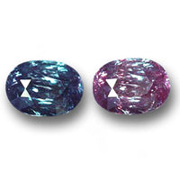 Der Chromgehalt im Stein ist für dessen Farbe verantwortlich. Seine besondere Eigenschaft besteht darin, dass er einen Farbwechsel zeigt. Von grün im Tageslicht in rot bei künstlicher Beleuchtung (außer bei Leuchtstoffröhren), bedingt durch seinen Chromgehalt. Sein starker Pleochroismus ist die Ursache dafür, sowie das unterschiedliche spektrale Helligkeitsmaximum des Tages- und des künstlichen Lichtes. Der Edelstein wirkt wie ein Filter, welcher nur noch rotes oder grünes Licht hindurch lässt. Im Tageslicht, welches einen großen Anteil an grünem Lichtes enthält, erscheint er daher grün. Im künstlichen Licht oder auch im Kerzenlicht, dessen roter Anteil viel stärker als der Grüne ist, erscheint er dagegen kräftig rot.